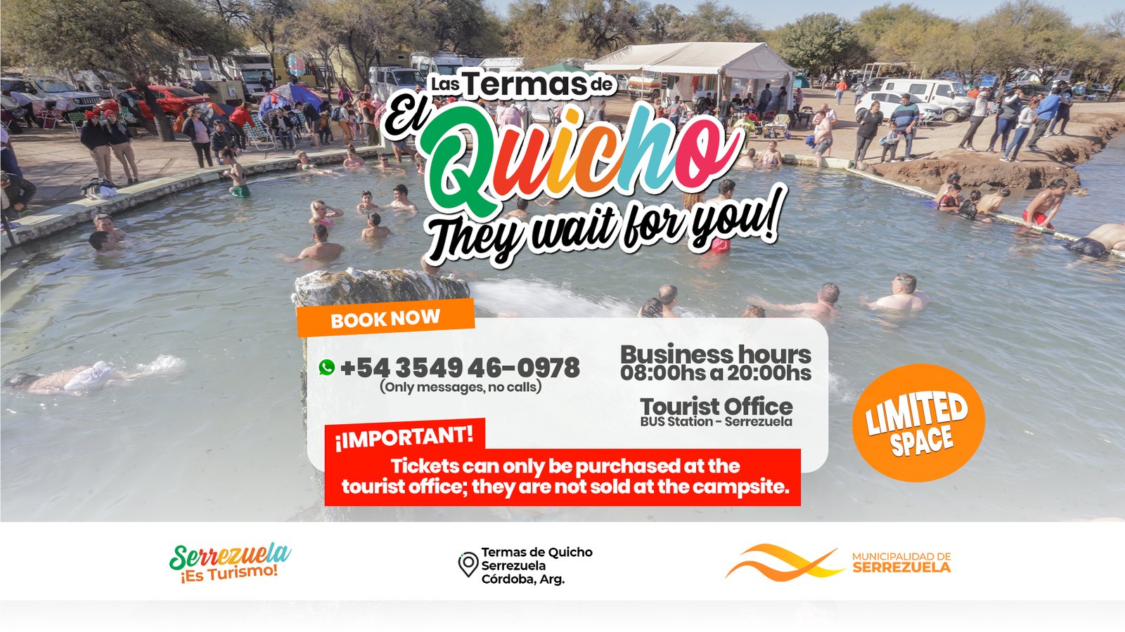 The traveler who visits the Hot Springs can enjoy a day of camping and after a restorative and relaxing bath, can taste the best goats and suckling pigs in northern Córdoba, as well as the richest regional dishes of Serrezuela.